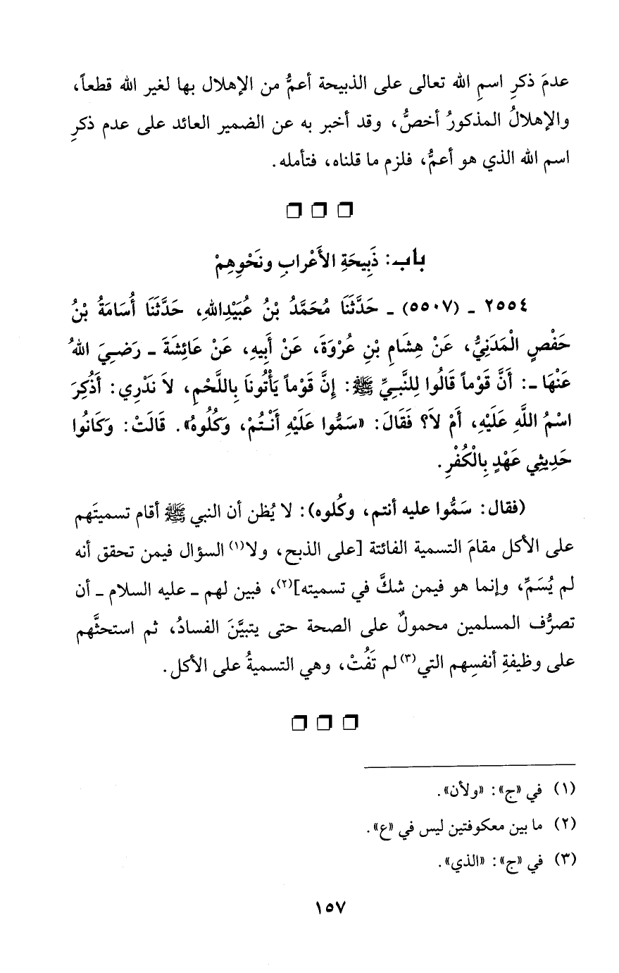 باب: ذَبِيحَةِ الأَعْرابِ ونَحْوِهِمْ