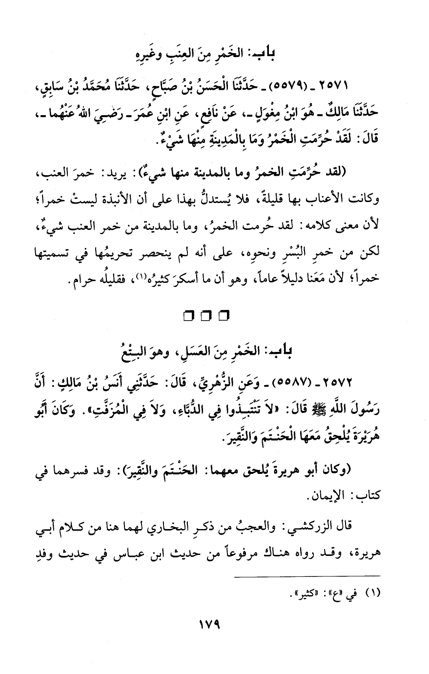 2572 - (5587) - وَعَنِ الزُّهْرِيِّ، قَالَ: حَدَّثَنِي أَنسُ بْنُ مَالِكٍ: أَنَّ رَسُولَ اللَّهِ - صلى الله عليه وسلم - قَالَ: "لاَ تَنْتَبِذُوا فِي الدُّبَّاءِ، وَلاَ فِي الْمُزَفَّتِ". وَكَانَ أَبُو هُرَيْرَةَ يُلْحِقُ مَعَهَا الْحَنْتَمَ وَالنَّقِيرَ.