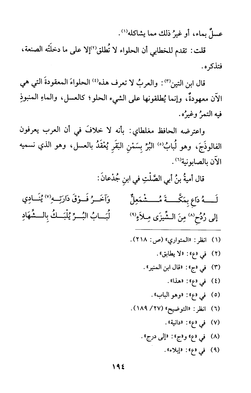 واعترضه الحافظ مغلطاي: بأنه لا خلافَ في أن العرب يعرفون الفالوذَجَ، وهو لُبابُ (¬5) البُرَّ بِسَمْنِ البَقَرِ يُعْقَدُ بالعسل، وهو الذي نسميه الآن بالصابونية (¬6).