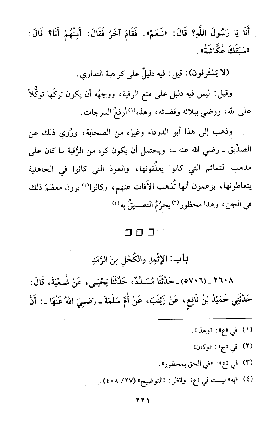 2608 - (5706) - حَدَّثَنَا مُسَدَّدٌ، حَدَّثَنَا يَحْيَى، عَنْ شُعْبَةَ، قَالَ: حَدَّثَنِي حُمَيْدُ بْنُ ناَفِعٍ، عَنْ زَيْنَبَ، محَنْ أُمِّ سَلَمَةَ - رَضِيَ اللهُ عَنْهَا -: أَنَّ