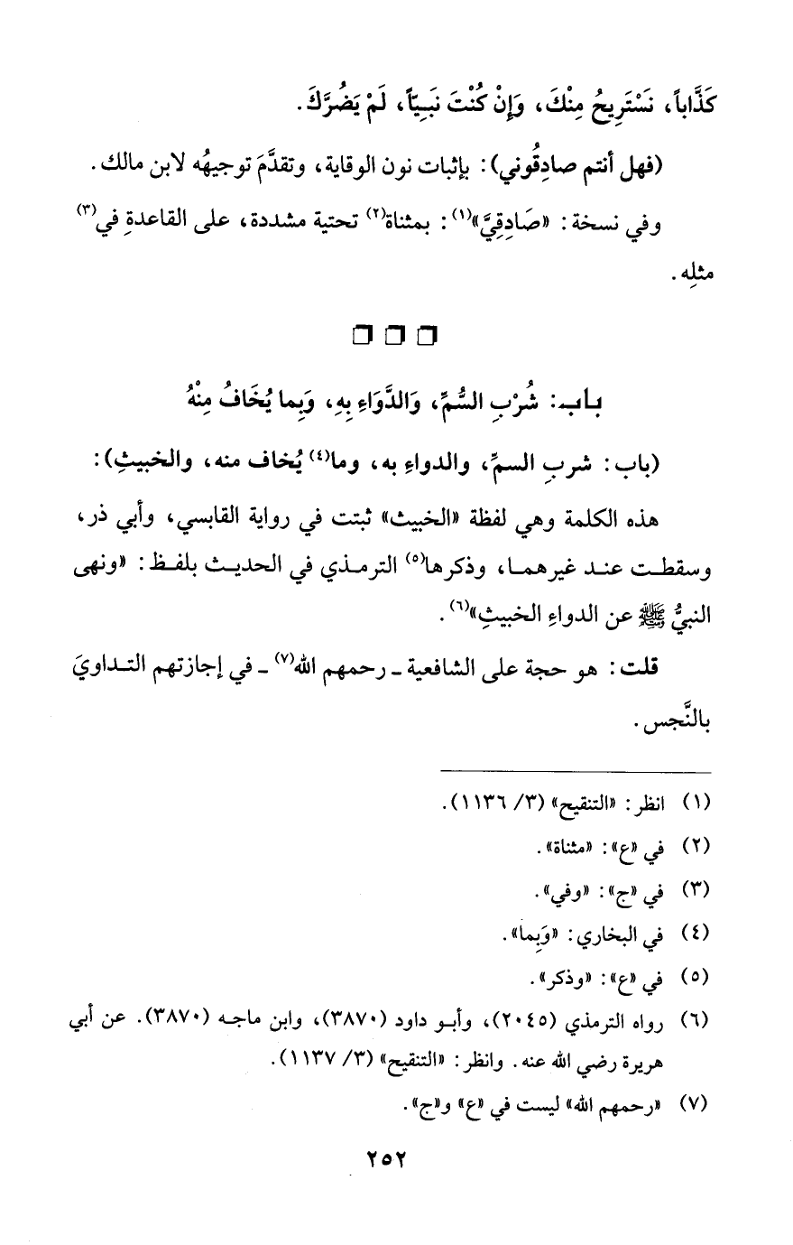 قلت: هو حجة على الشافعية - رحمهم الله (¬7) - في إجازتهم التداويَ بالنَّجس.