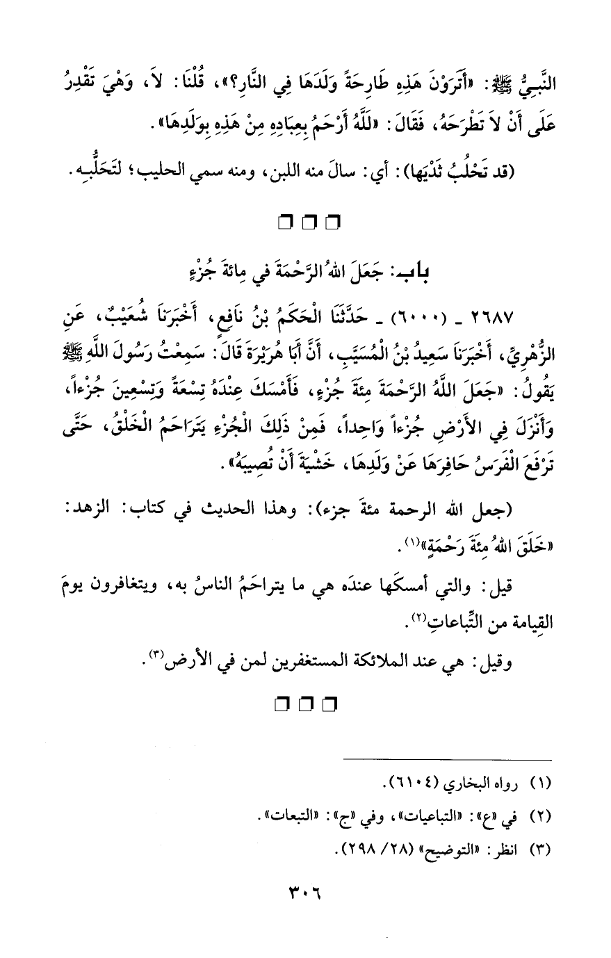 باب: جَعَلَ اللهُ الرَّحْمَةَ في مِائةَ جُزْءٍ