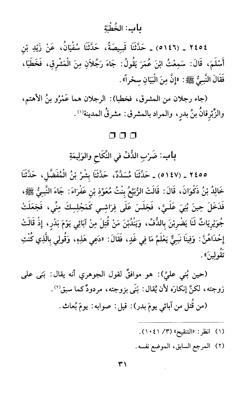 باب: ضَرْبِ الدُّفِّ في النِّكاحِ والوَليمَةِ