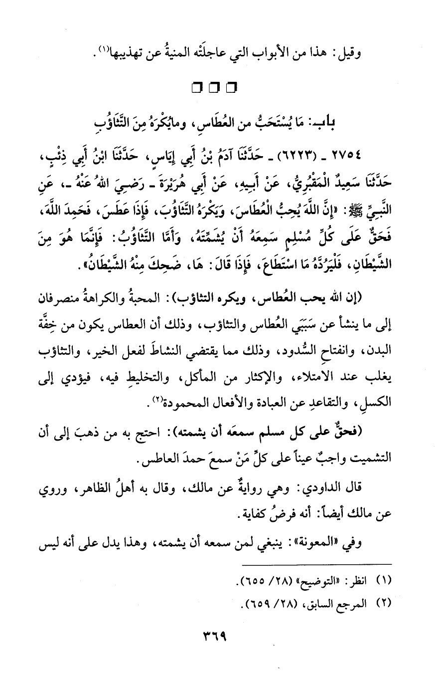 باب: مَا يُسْتَحَبُّ من العُطَاسِ، وما يُكْرَهُ مِنَ التَّثَاؤُبِ