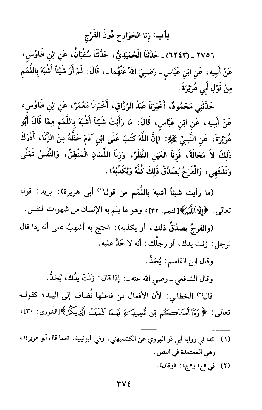 باب: زِنا الجَوَارِح دُونَ الفَرْجِ