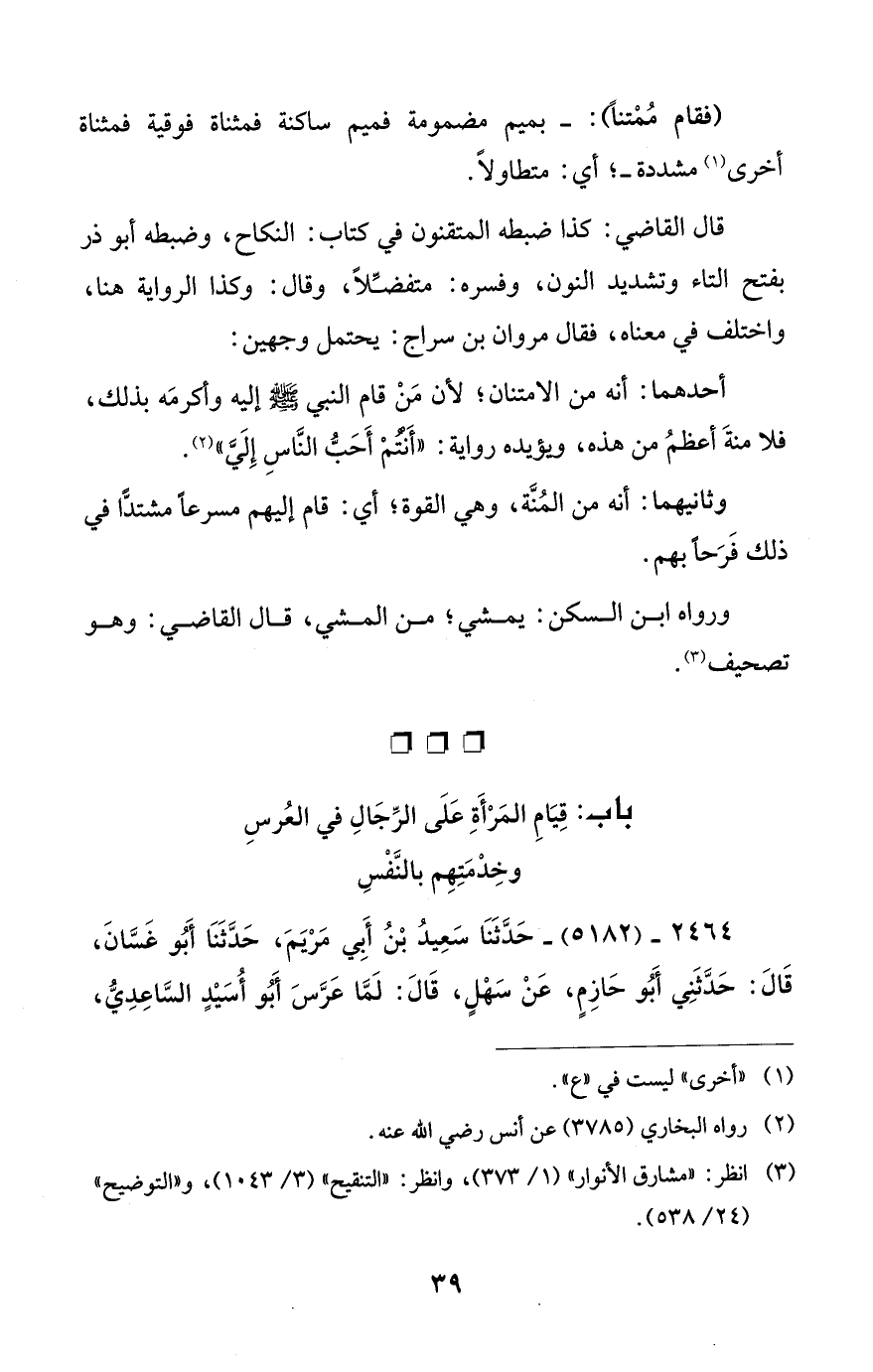 (فقام مُمْتنًا): -بميم مضمومة فميم ساكنة فمثناة فوقية فمثناة أخرى (¬1) مشددة-؛ أي: متطاولًا.