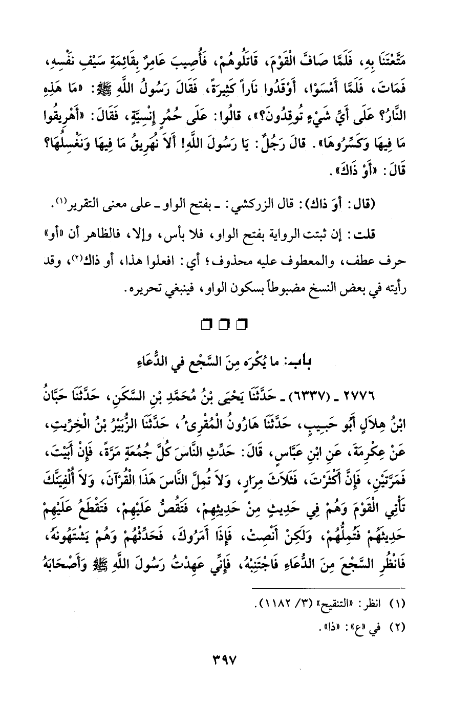 باب: ما يُكْرَه مِنَ السَّجْع في الدُّعَاءِ