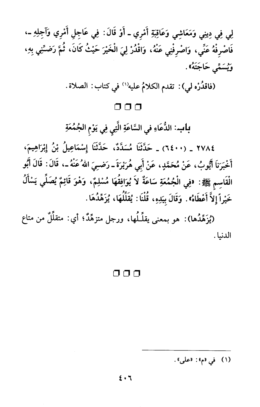 باب: الدُّعَاءِ في السَّاعَةِ الَّتِيِ فِي يَوْمِ الجُمُعَةِ