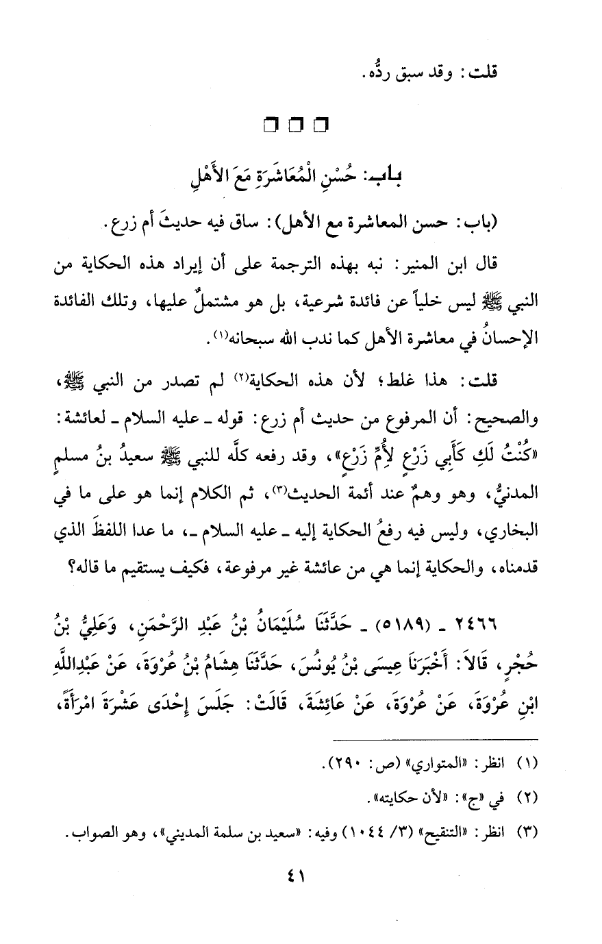 (باب: حسن المعاشرة مع الأهل): ساق فيه حديثَ أم زرع.
