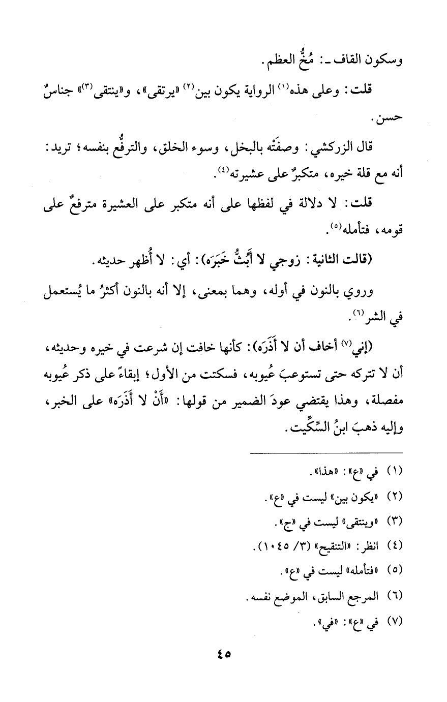 قال الزركشي: وصفَتْه بالبخل، وسوء الخلق، والترفُّع بنفسه؛ تريد: أنه مع قلة خيره، متكبرٌ على عشيرته (¬4).