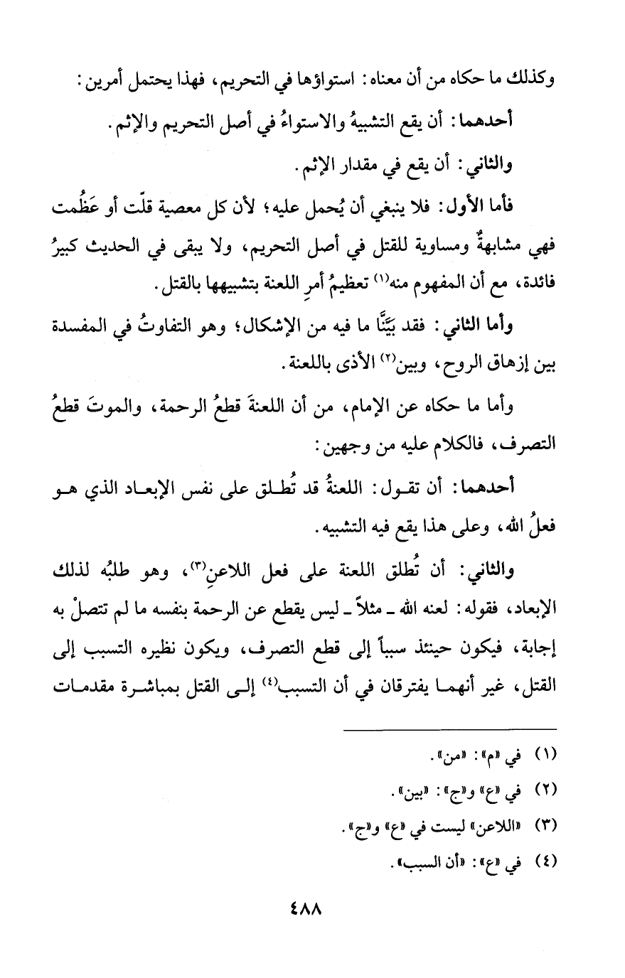 فأمَّا الأوّل: فلا ينبغي أن يُحمل عليه؛ لأن كل معصية قلّت أو عَظُمت فهي مشابهةٌ ومساوية للقتل في أصل التحريم، ولا يبقى في الحديث كبيرُ فائدة، مع أن المفهوم منه (¬1) تعظيمُ أمرِ اللعنة بتشبيهها بالقتل.