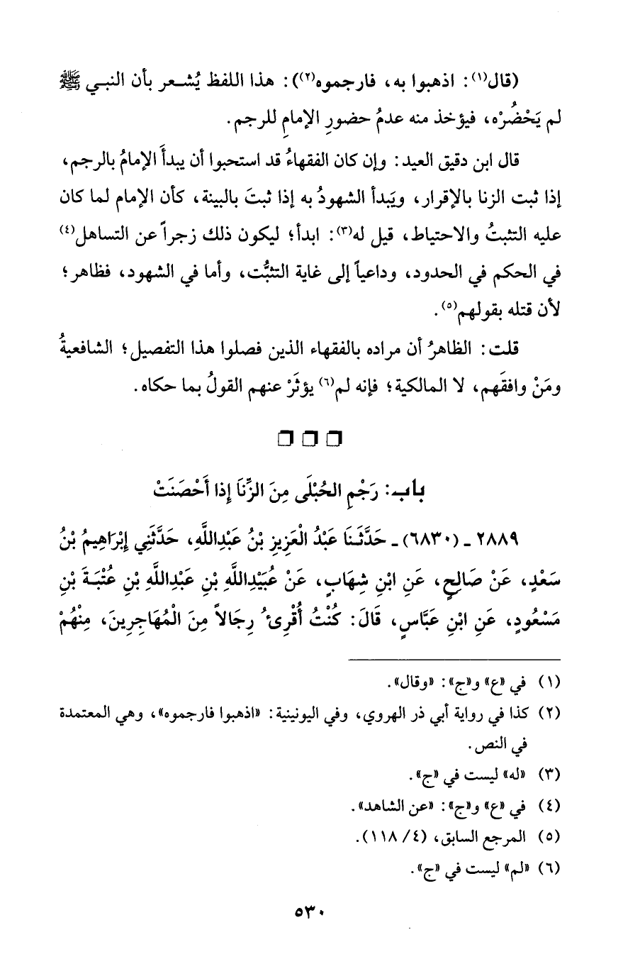 (¬2) كذا في رواية أبي ذر الهروي، وفي اليونينية: "اذهبوا فارجموه"، وهي المعتمدة في النص.