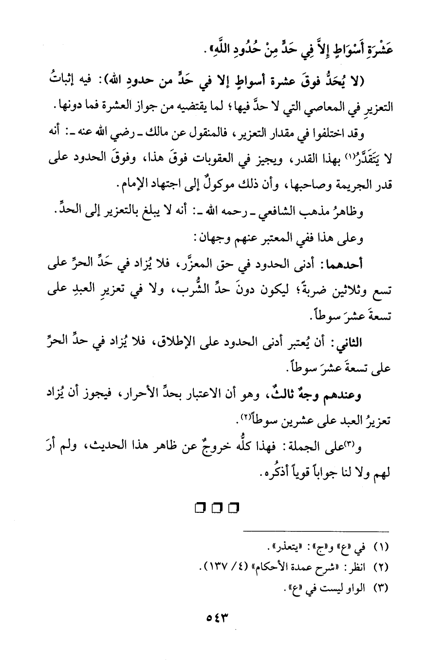 عَشْرَةِ أَسْوَاطٍ إِلَّا فِي حَدٍّ مِنْ حُدُودِ اللهِ".