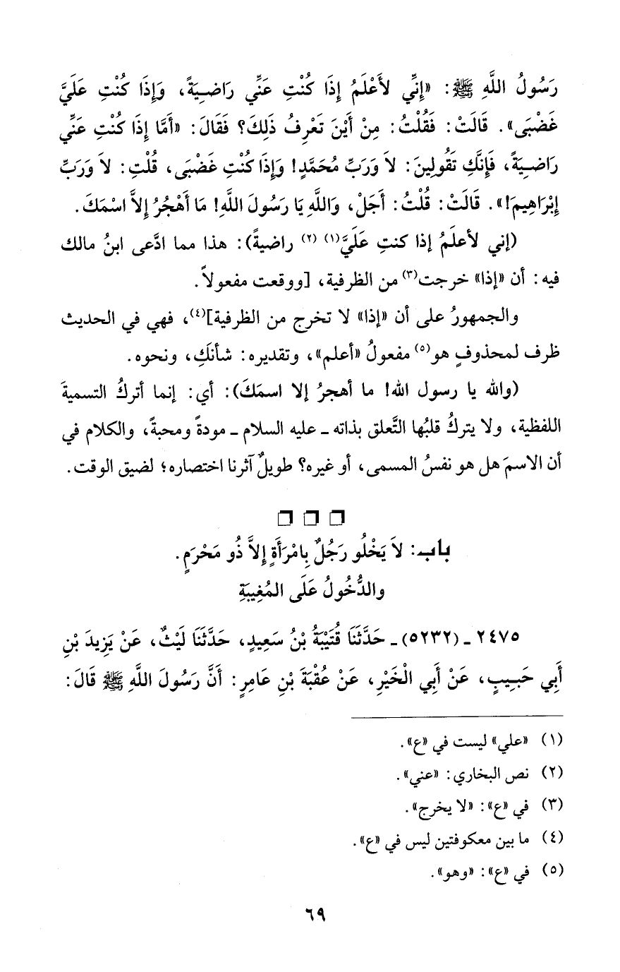 باب: لَا يَخْلُو رَجُلٌ بِامْرَأَةٍ إِلَّا ذُو مَحْرَمٍ. والدُّخُولُ عَلَى المُغِيبَةِ