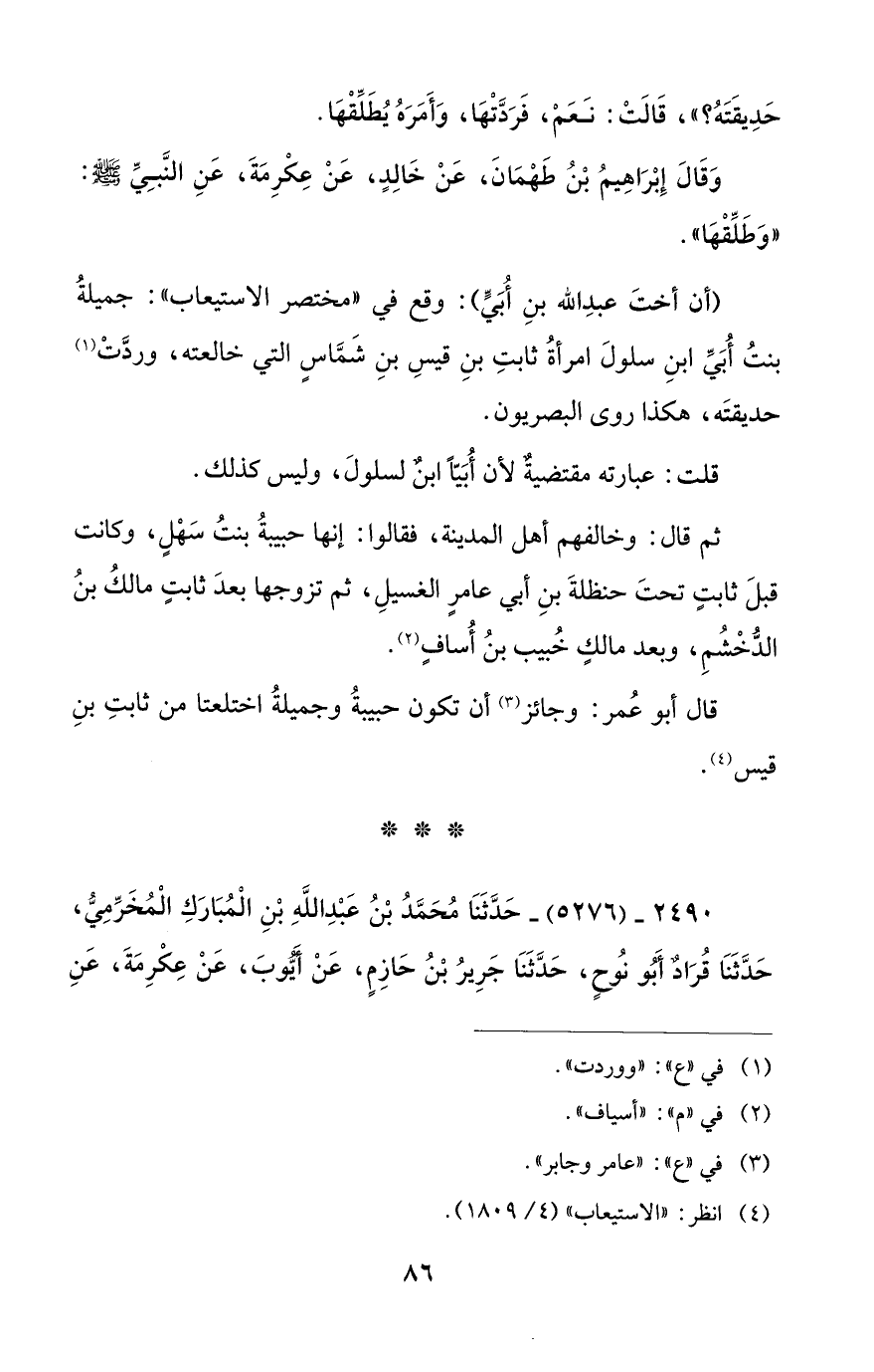 قال أبو عُمر: وجائز (¬3) أن تكون حبيبةُ وجميلةُ اختلعتا من ثابتِ بنِ قيس (¬4).