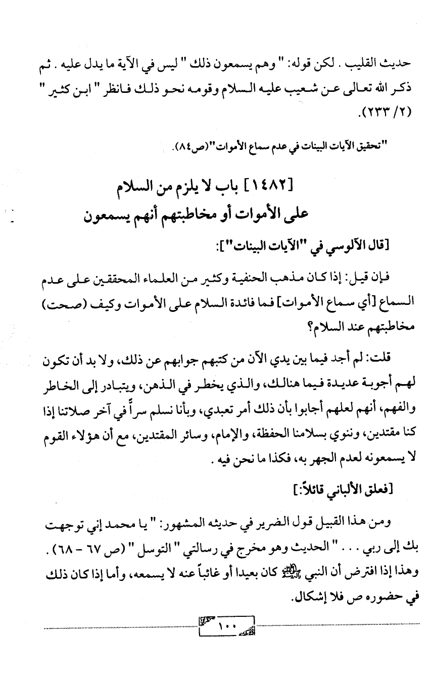 "تحقيق الآيات البينات في عدم سماع الأموات" (ص84).