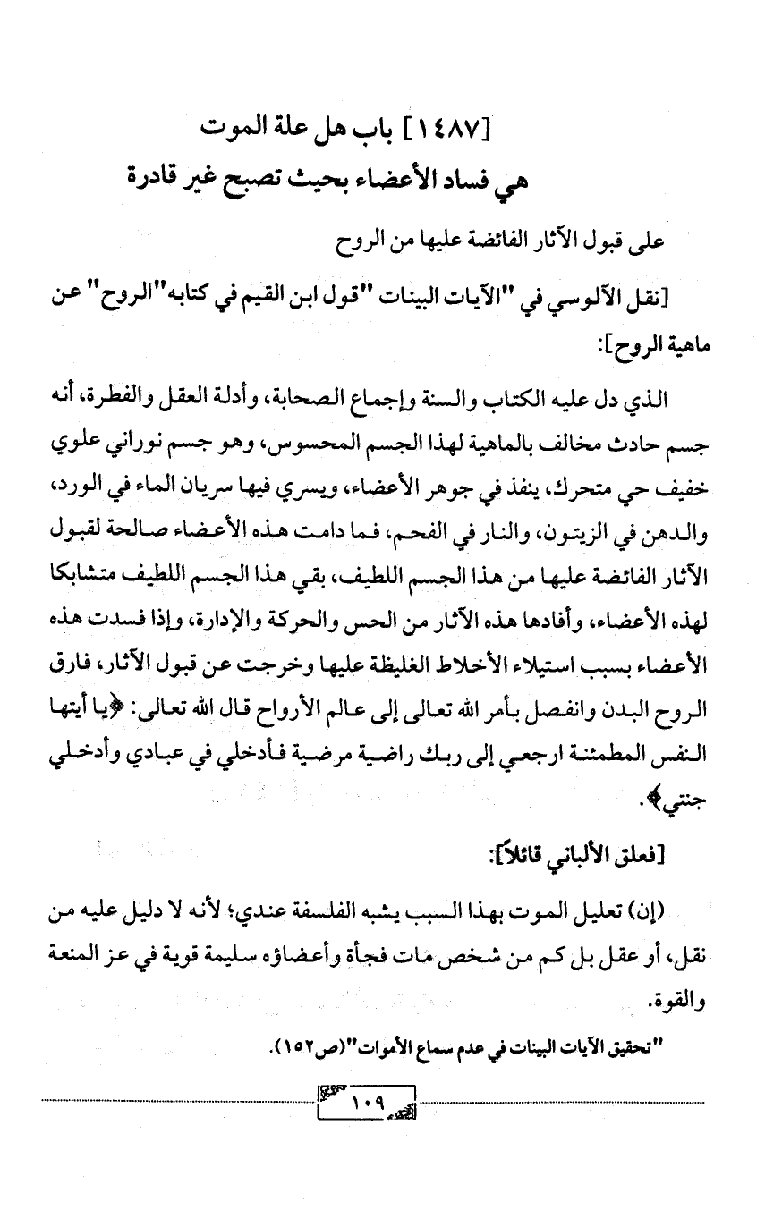 [1487] باب هل علة الموت هي فساد الأعضاء بحيث تصبح غير قادرة على قبول الآثار الفائضة عليها من الروح