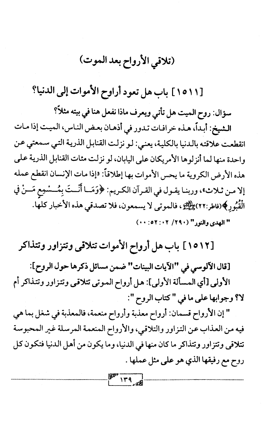 [1511] باب هل تعود أراوح الأموات إلى الدنيا؟