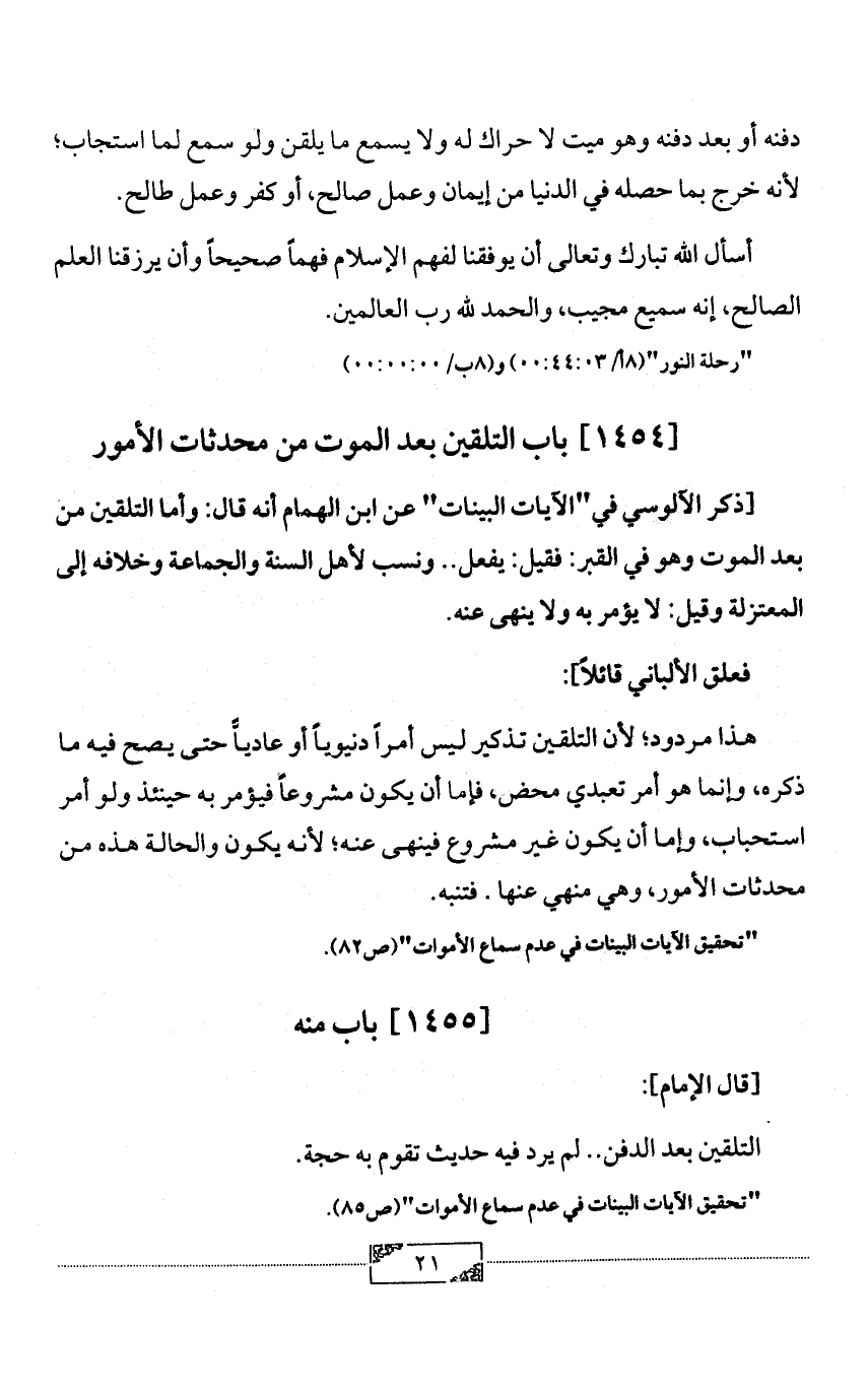 [1454] باب التلقين بعد الموت من محدثات الأمور