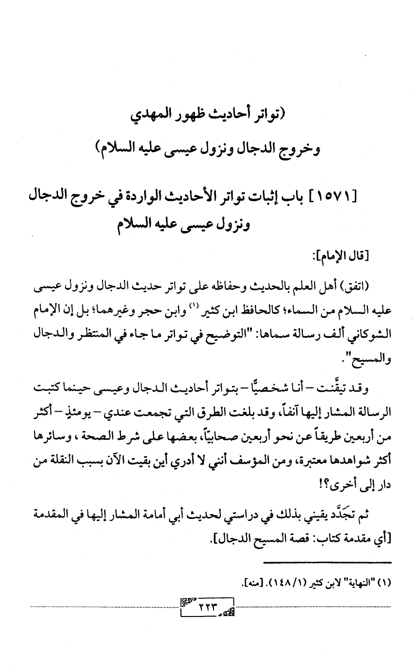 ثم تَجَدَّد يقيني بذلك في دراستي لحديث أبي أمامة المشار إليها في المقدمة [أي مقدمة كتاب: قصة المسيح الدجال].