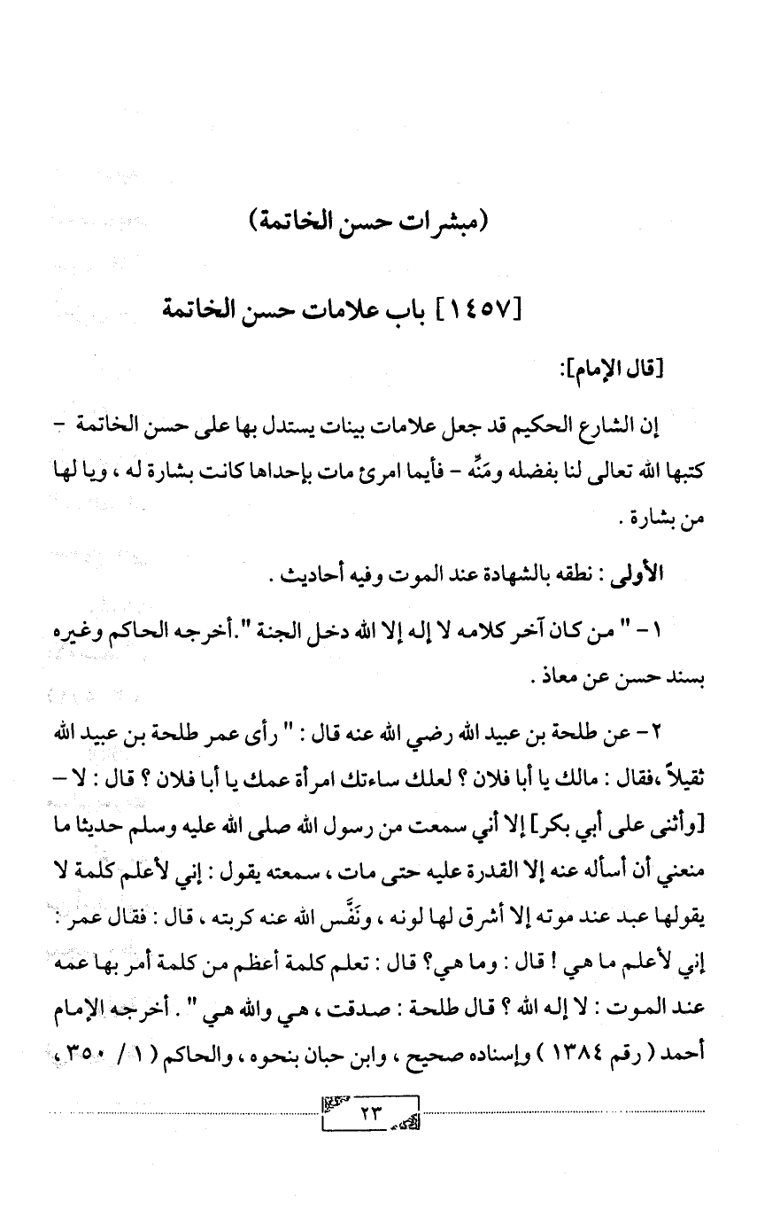 1 - " من كان آخر كلامه لا إله إلا الله دخل الجنة ".أخرجه الحاكم وغيره بسند حسن عن معاذ.