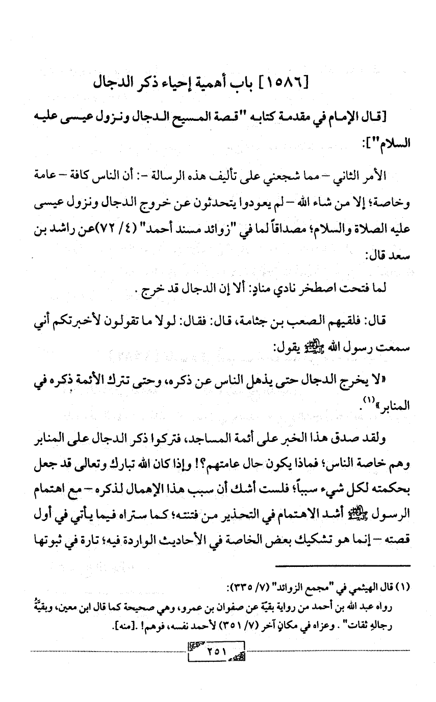 [قال الإمام في مقدمة كتابه "قصة المسيح الدجال ونزول عيسى عليه السلام"]: