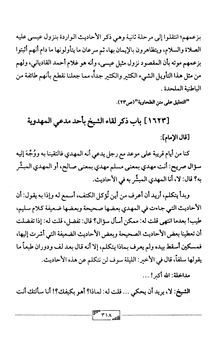 [1623] باب ذكر لقاء الشيخ بأحد مدعي المهدوية