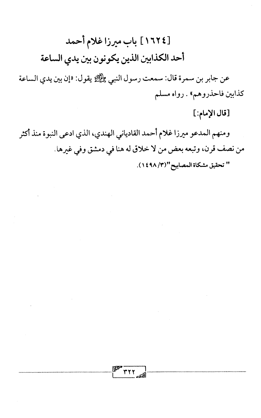 [1624] باب ميرزا غلام أحمد أحد الكذابين الذين يكونون بين يدي الساعة