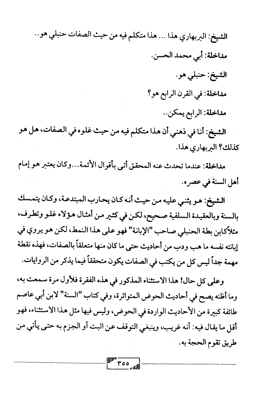 الشيخ: البربهاري هذا ... هذا متكلم فيه من حيث الصفات حنبلي هو ..