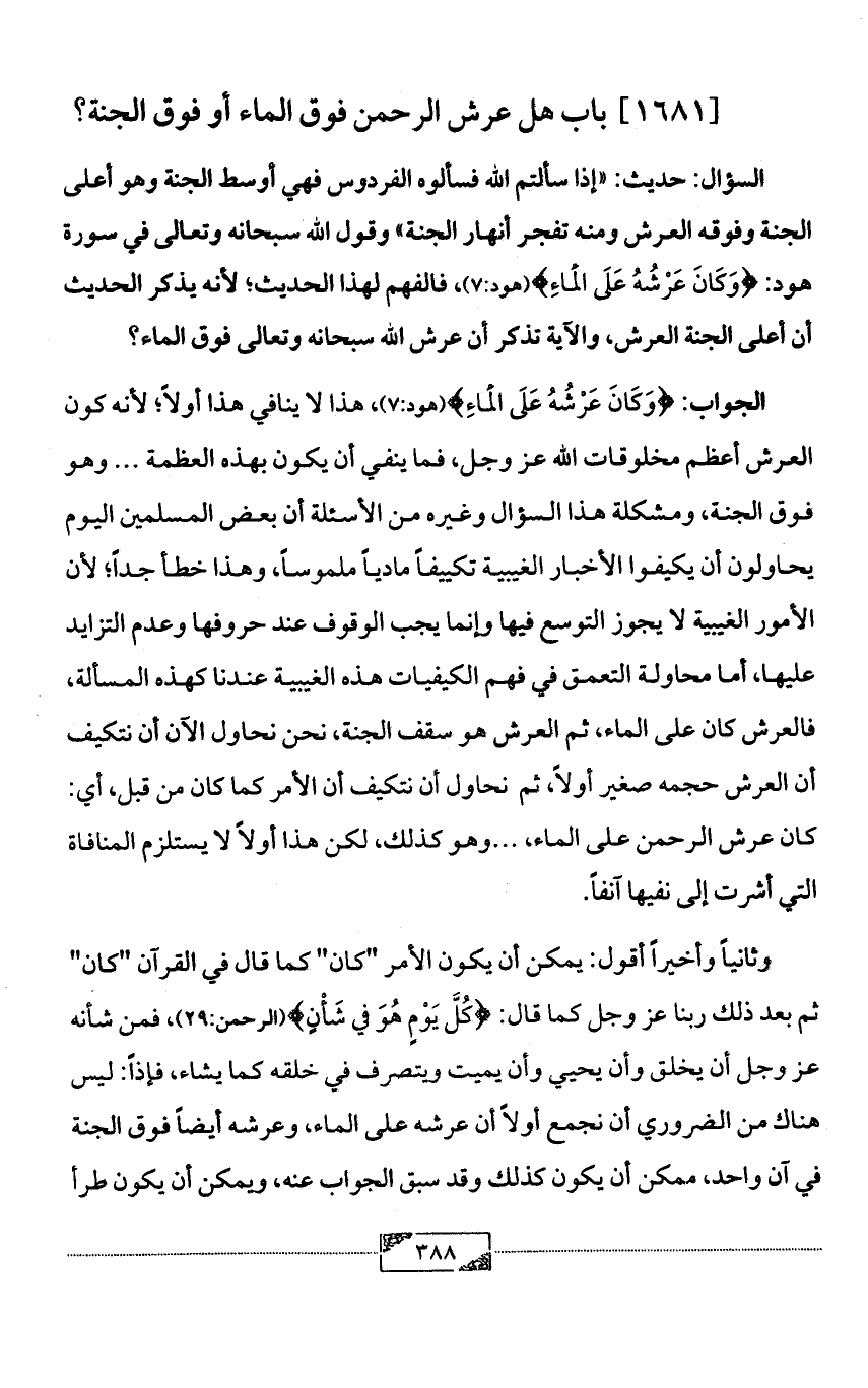 [1681] باب هل عرش الرحمن فوق الماء أو فوق الجنة؟