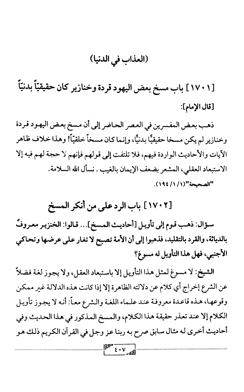 [1701] باب مسخ بعض اليهود قردة وخنازير كان حقيقيّاً بدنيّاً