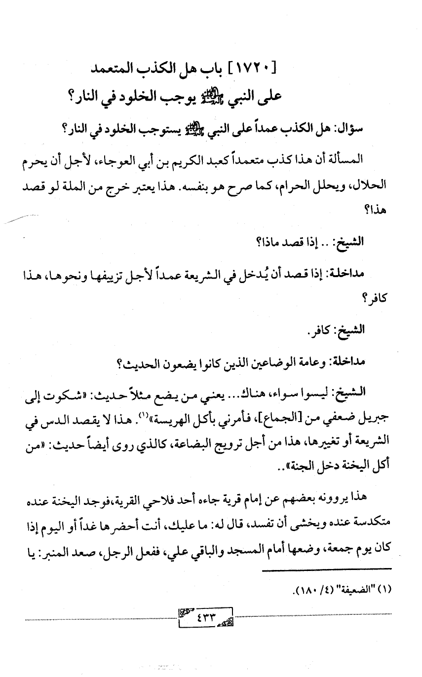 [1720] باب هل الكذب المتعمد على النبي - صلى الله عليه وآله وسلم - يوجب الخلود في النار؟