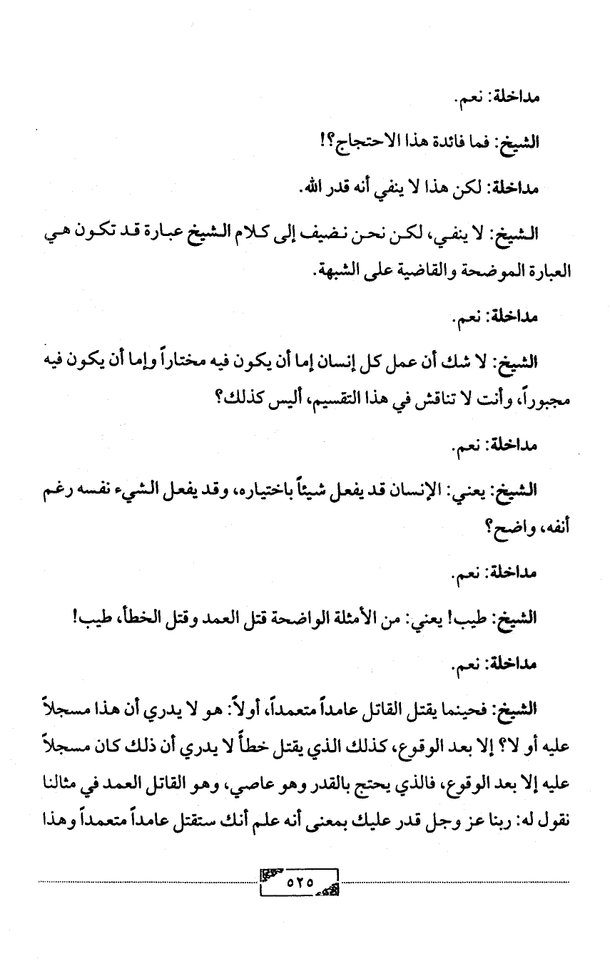 الشيخ: لا شك أن عمل كل إنسان إما أن يكون فيه مختاراً وإما أن يكون فيه مجبوراً، وأنت لا تناقش في هذا التقسيم، أليس كذلك؟