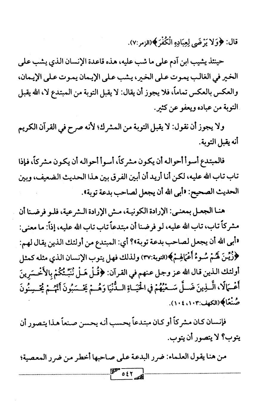 حينئذ يشيب ابن آدم على ما شب عليه، هذه قاعدة الإنسان الذي يشب على الخير في الغالب يموت على الخير، يشب على الإيمان يموت على الإيمان، والعكس بالعكس تماماً، فلا يجوز أن يقال: لا يقبل التوبة من المبتدع لا، الله يقبل التوبة من عباده ويعفو عن كثير.
