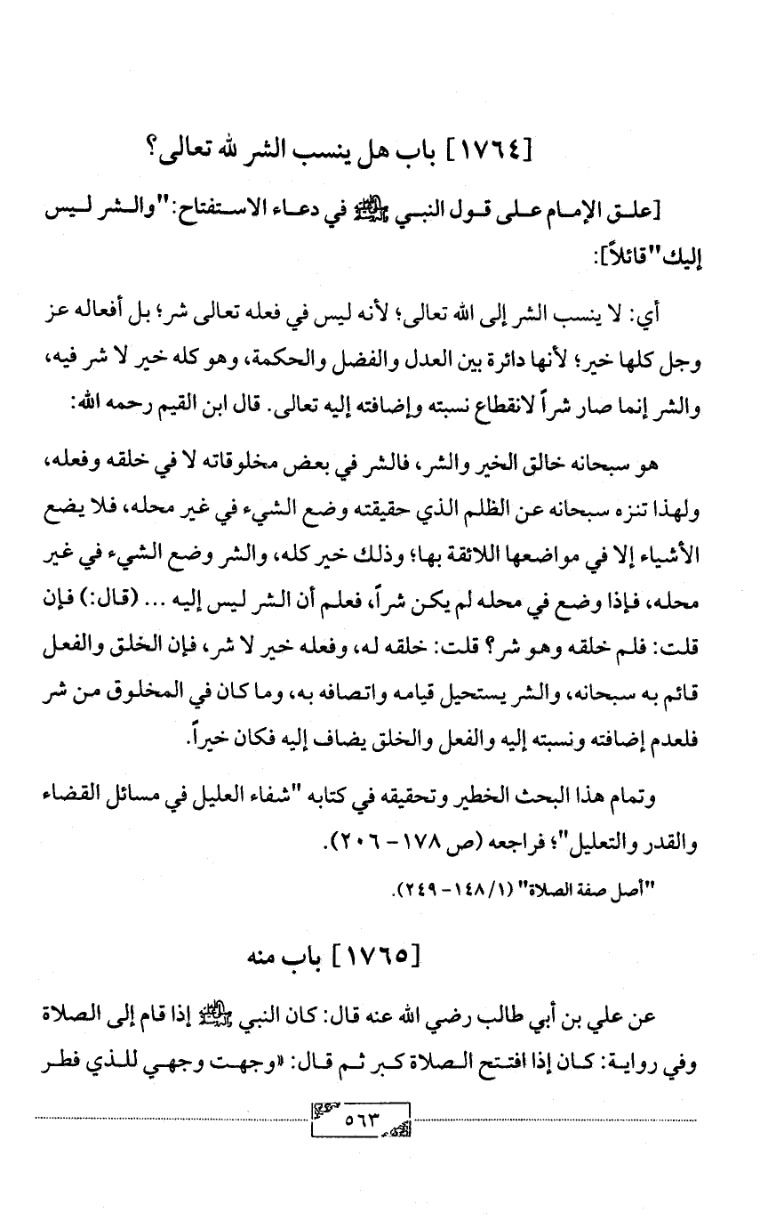 [علق الإمام على قول النبي - صلى الله عليه وآله وسلم - في دعاء الاستفتاح:"والشر ليس إليك"قائلاً]: