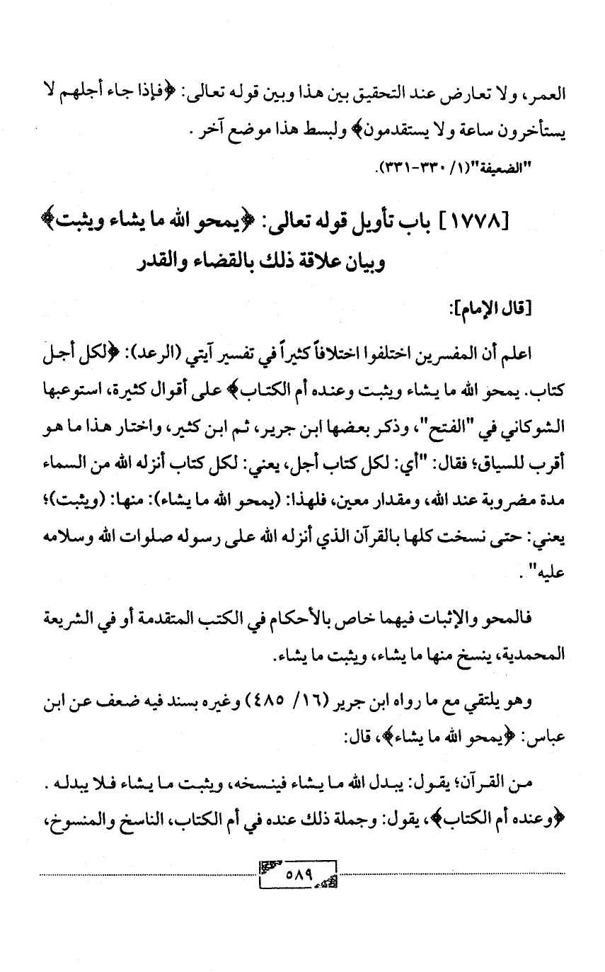 [1778] باب تأويل قوله تعالى: {يمحو الله ما يشاء ويثبت} وبيان علاقة ذلك بالقضاء والقدر