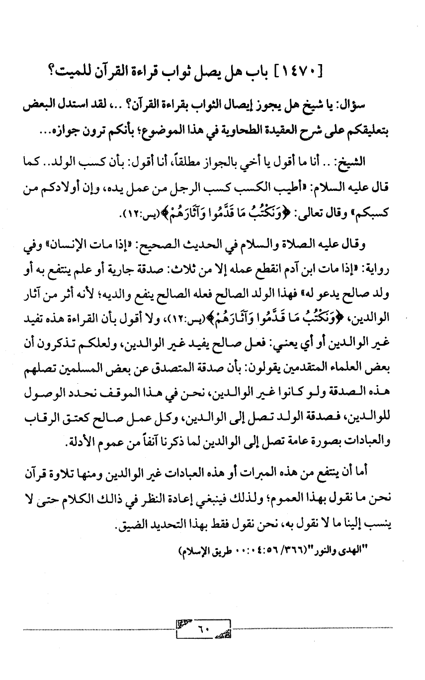 [1470] باب هل يصل ثواب قراءة القرآن للميت؟