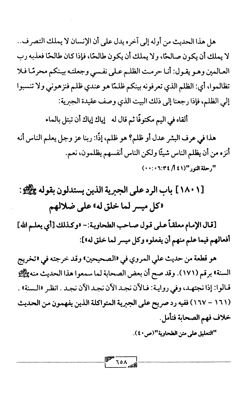 "التعليق على متن الطحاوية" (ص40).