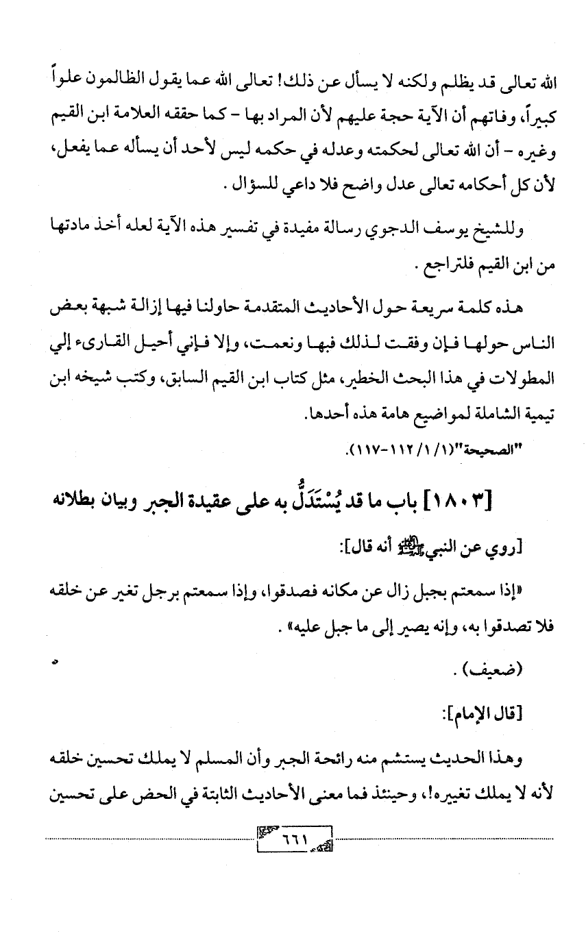 [1803] باب ما قد يُسْتَدَلُّ به على عقيدة الجبر وبيان بطلانه