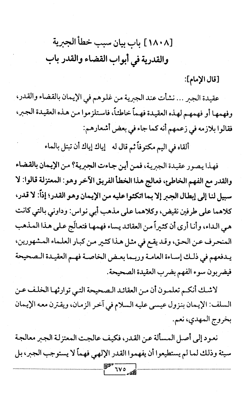 [1808] باب بيان سبب خطأ الجبرية والقدرية في أبواب القضاء والقدر باب