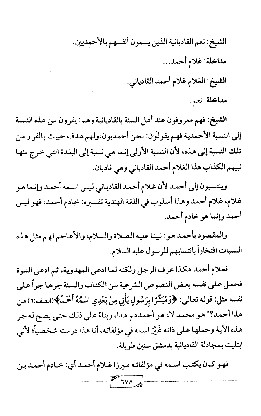 الشيخ: الغلام غلام أحمد القادياني.