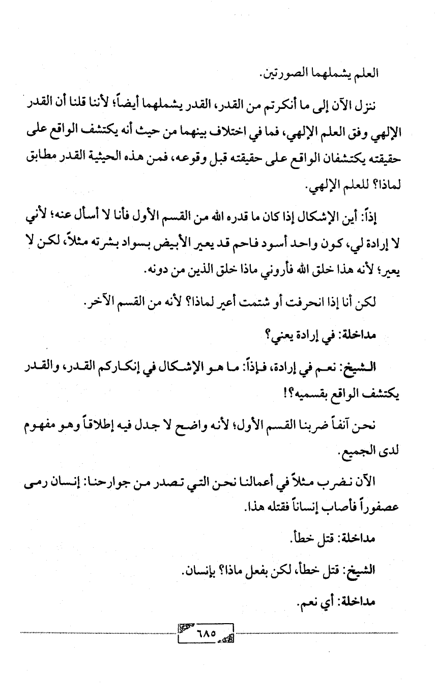الشيخ: نعم في إرادة، فإذاً: ما هو الإشكال في إنكاركم القدر، والقدر يكتشف الواقع بقسميه؟!