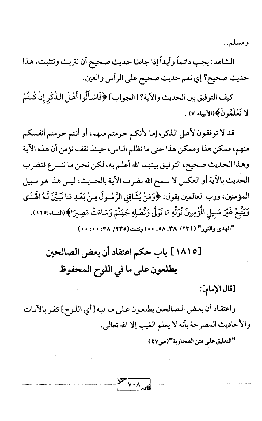 [1815] باب حكم اعتقاد أن بعض الصالحين يطلعون على ما في اللوح المحفوظ