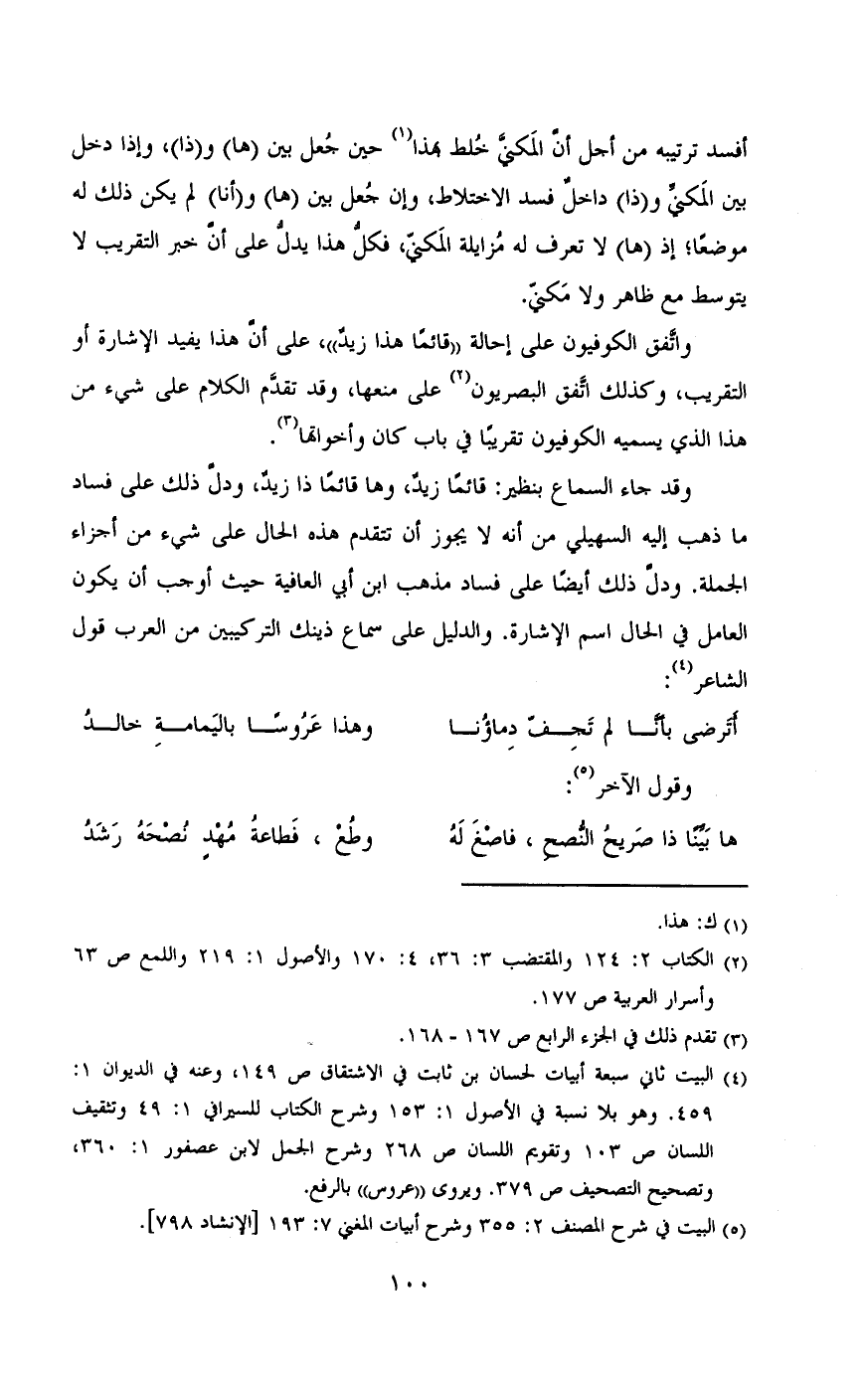 واتفق الكوفيون على إحالة «قائما هذا زيد» , على أن هذا يفيد الإشارة أو التقريب, وكذلك اتفق البصريون على منعها, وقد تقدم الكلام على شئ من هذا الذى يسميه الكوفيون تقريبا فى باب كان وأخواتها.