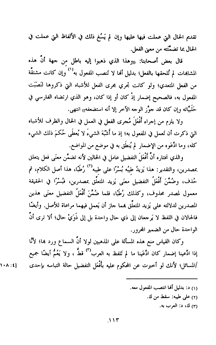 ولا يلزم من إجراء أفعل مجرى الفعل فى العمل فى الحال والظرف للأشباه التى ذكرت أن تعمل فى المفعول به , إذ ما أشبه الشئ لا يعطى حكم ذلك الشئ كله , وما ادعوه من الإضمار لم ينطق به فى موضع من المواضع.
