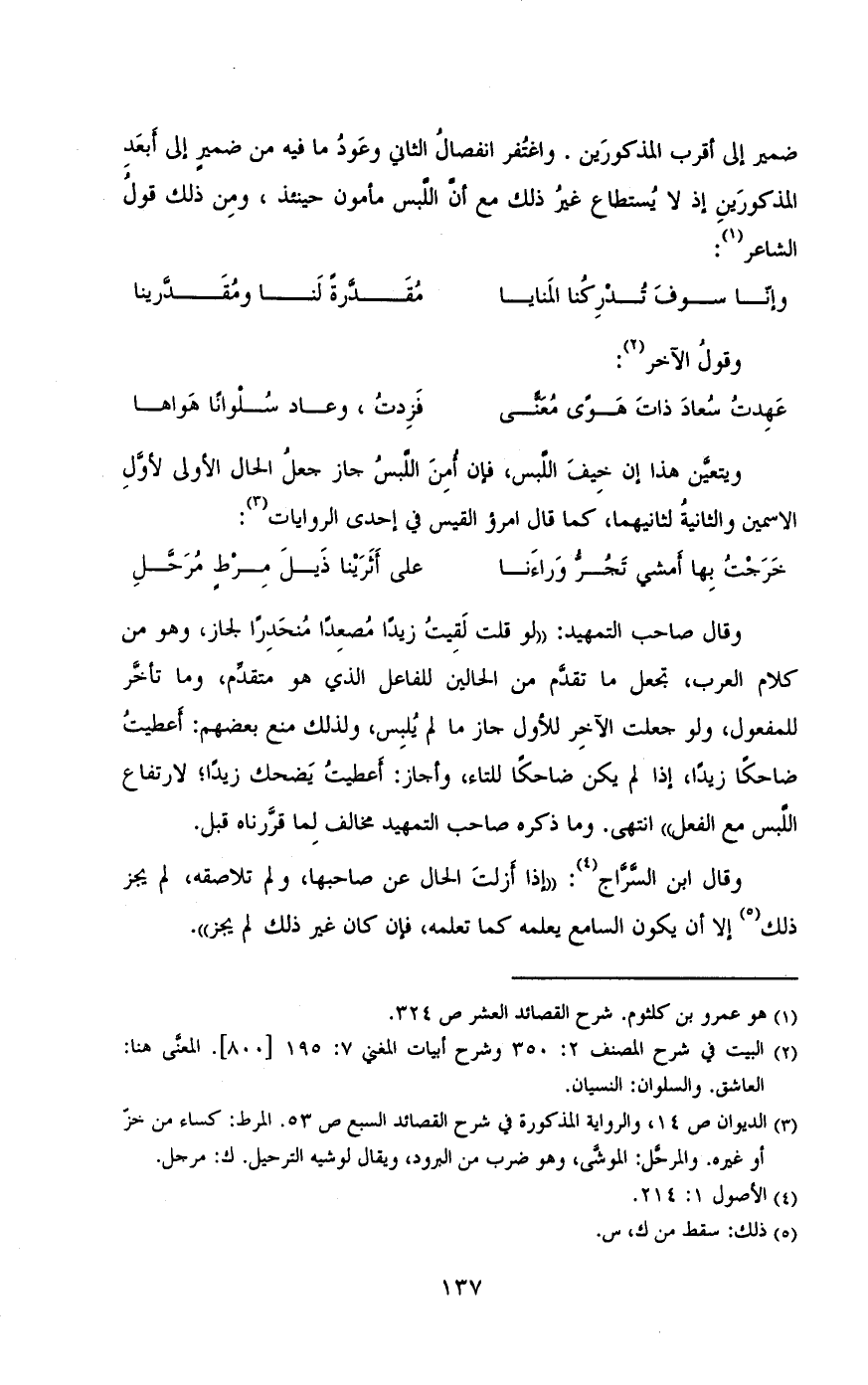 ضمير إلى أقرب المذكورين. واغتفر انفصال الثاني وعود ما فيه من ضمير إلى ابعد المذكورين إذ لا يستطاع غير ذالك مع ان اللبس مأمون حينئذ، ومن ذلك قول الشاعر: