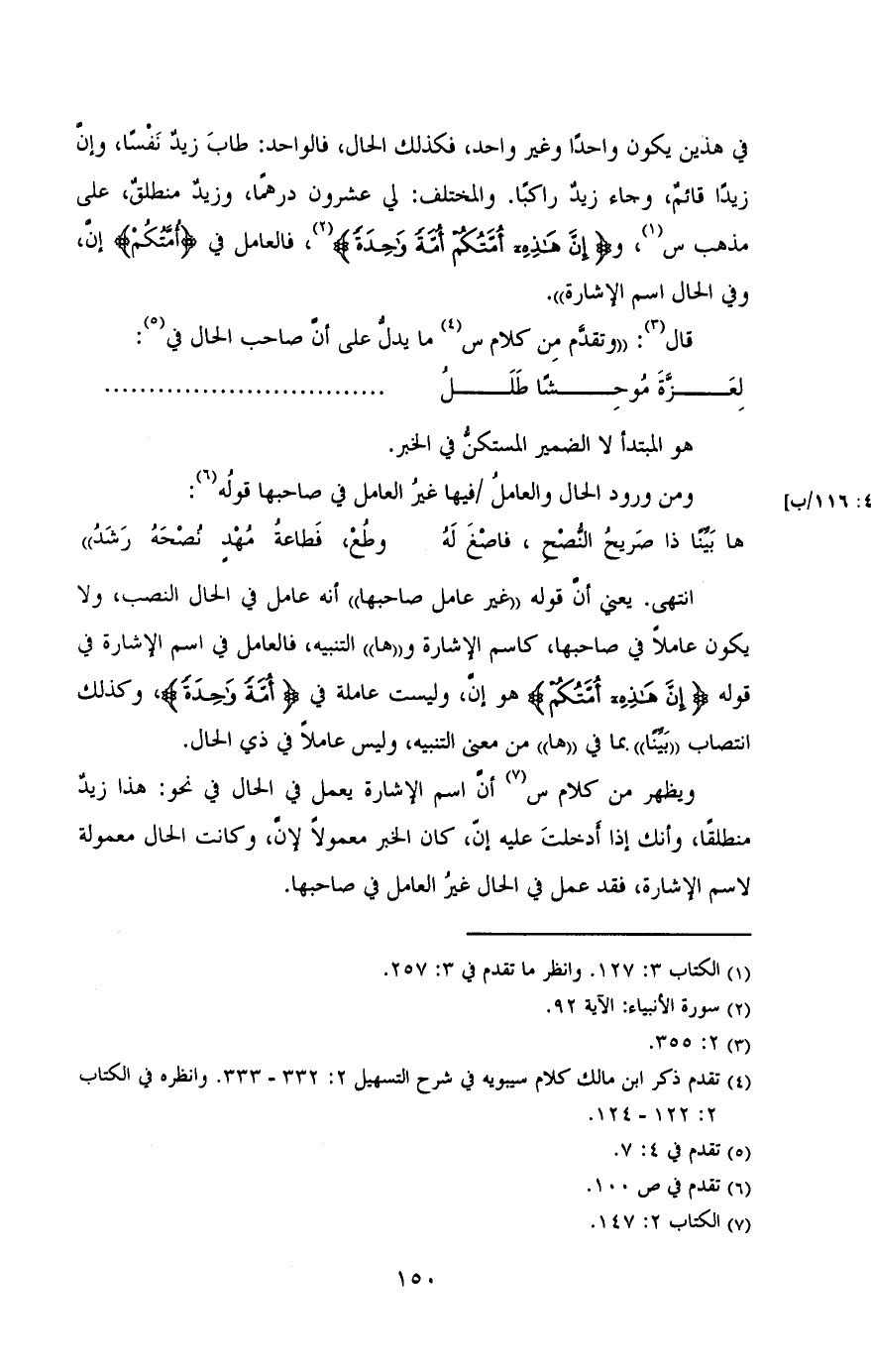 في هذين يكون واحدا وغير واحد، فكذلك الحال، فالواحد: طاب زيد نفسا، وان زيدا قائم، وجاء زيد راكبا. والمختلف: لي عشرون درهما، وزيد منطلق، على مذهب س، «إن هذه أمتكم أمه واحده»، فالعامل في «أمتكم» أن، وفي الحال اسم الإشارة».