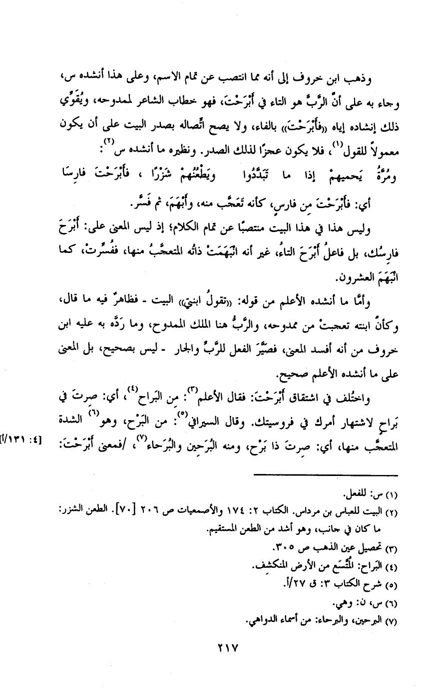 واختلف في اشتقاق أبرحت: فقال الأعلم: من البراح، أي: صرت في براح لاشتهار أمرك في فروسيتك. وقال السيرافي: من البرح، وهو الشدة المتعجب منها، أي: صرت ذا برح، ومنه البرحين والبرحاء، /فمعنى أبرحت:
