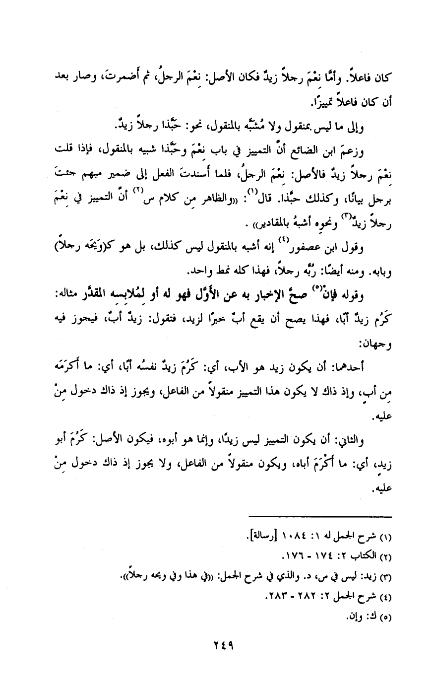 وزعم ابن الضائع أن التمييز في باب نعم وحبذا شبيه بالمنقول، فإذا قلت نعم رجلا زيد فالأصل: نعم الرجل، فلما أسندت الفعل إلي ضمير مبهم جئت برجل بيانا، وكذلك حبذا. قال: «والظاهر من كلام س أن التمييز في نعم رجلا زيد ونحوه أشبه بالمقادير».