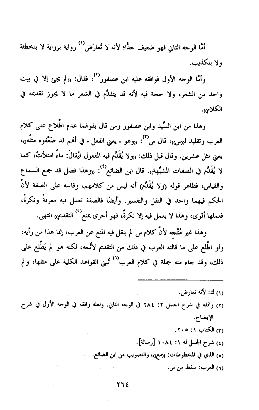 لا يقدم فى الصفات المشبهة":قال ابن الضائع:"وهذا فصل قد جمع السماع